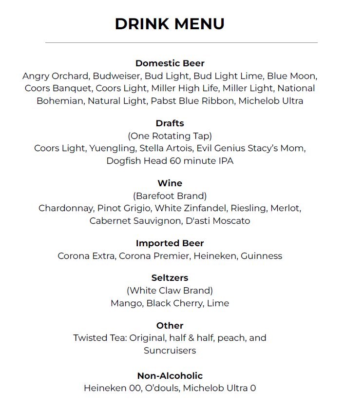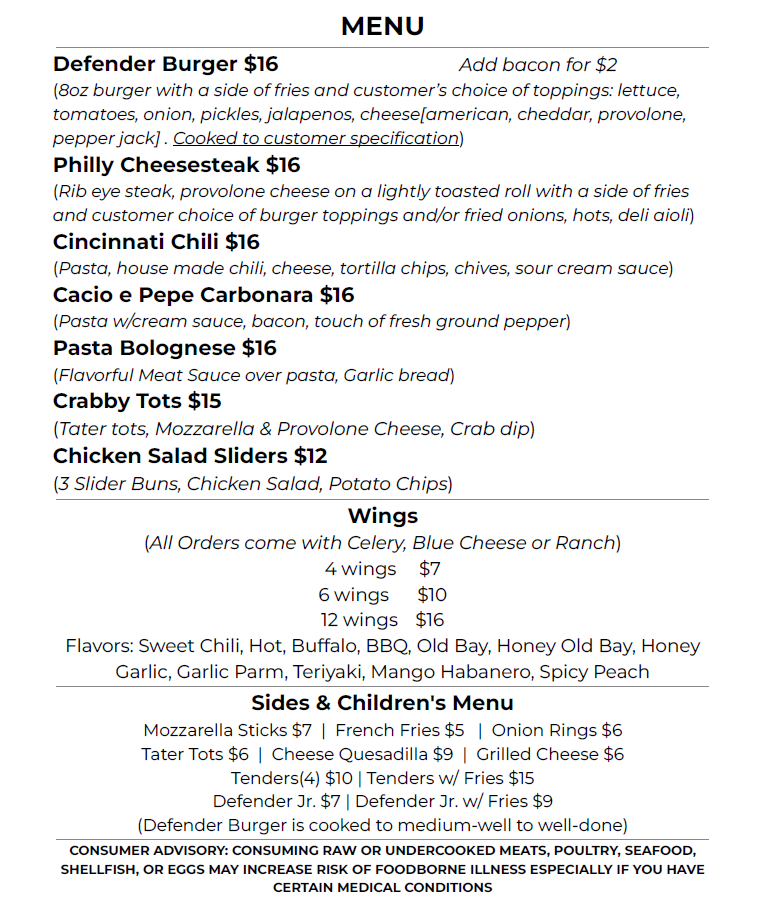 Sunday: Brunch menu (10AM - 2PM), meatball Subs (3PM - Close)