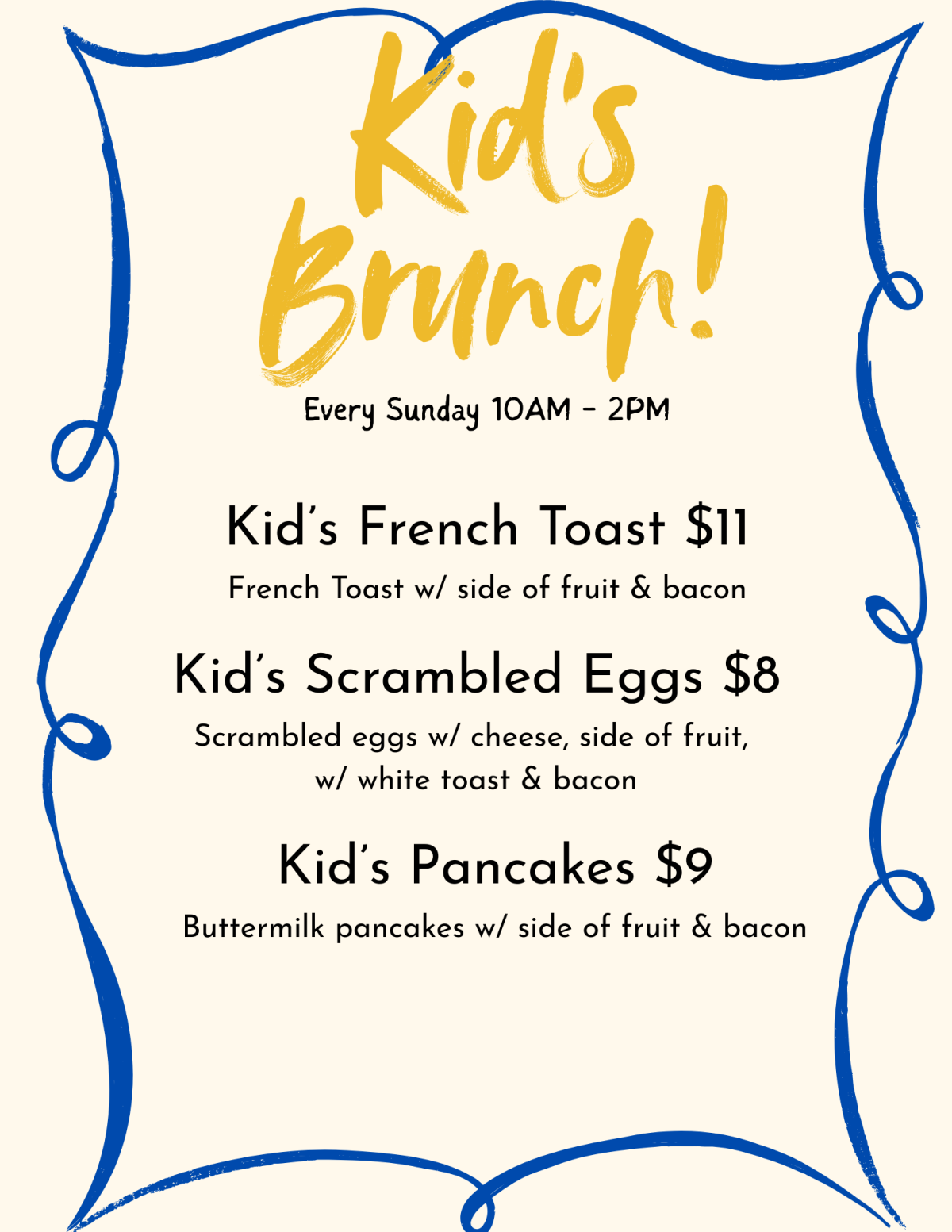 Sunday: Brunch & Wings menu (10AM - 2PM), meatball Subs (3PM - Close)